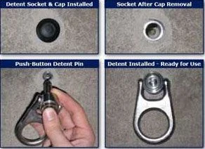 - Reusable detent D-ring assembly – extra sockets (#2101000) and detent D-rings (#2101002) also available
